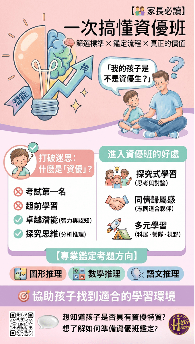 - 不要只為「資優」標籤:資優生是特殊教育服務對象,不是升學工具。孩子的快樂與心理健康比任何標籤都重要。